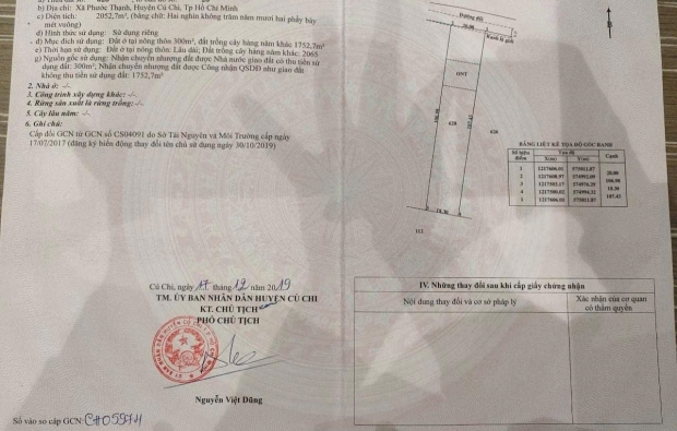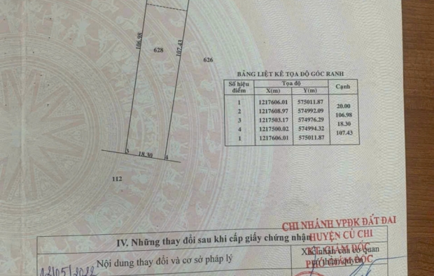 Đi vào 500m thông ra kênh Đông, QL22 xã Phước Thạnh - Củ Chi - Gần chợ, trường học, gần UBND - Diện tích: 2.052m2, 20x106, 300 thổ - Rất thích hợp làm nhà vườn, nhà ở, kho xưởng, cty hoặc đầu tư sinh lời... (đất kế bên cty May) - Đường lớn, quy hoạch khu dân cư Giá 7 tỷ thương lượng